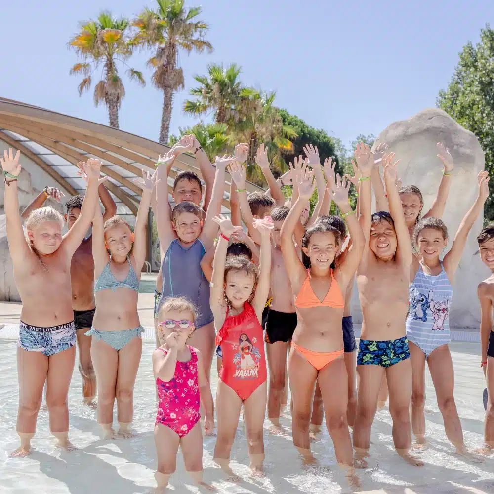 Autour des bassins, des plages aménagées permettent de profiter pleinement de l’espace aquatique. Ces plages sont équipées de bains de soleil, offrant un cadre agréable pour se détendre entre deux baignades. Le parc aquatique est conçu pour alterner facilement entre moments actifs et instants de repos, dans une ambiance conviviale et familiale. Des nocturnes sont également organisées à l’espace aquatique, permettant de vivre la piscine dans une atmosphère différente, en soirée, pendant la saison. L’ensemble du complexe aquatique s’intègre harmonieusement dans l’organisation du camping et dans le rythme des journées de vacances.