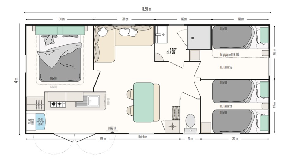 MH Super Riviera 6 pers. 3 ch. clim/tv/lv